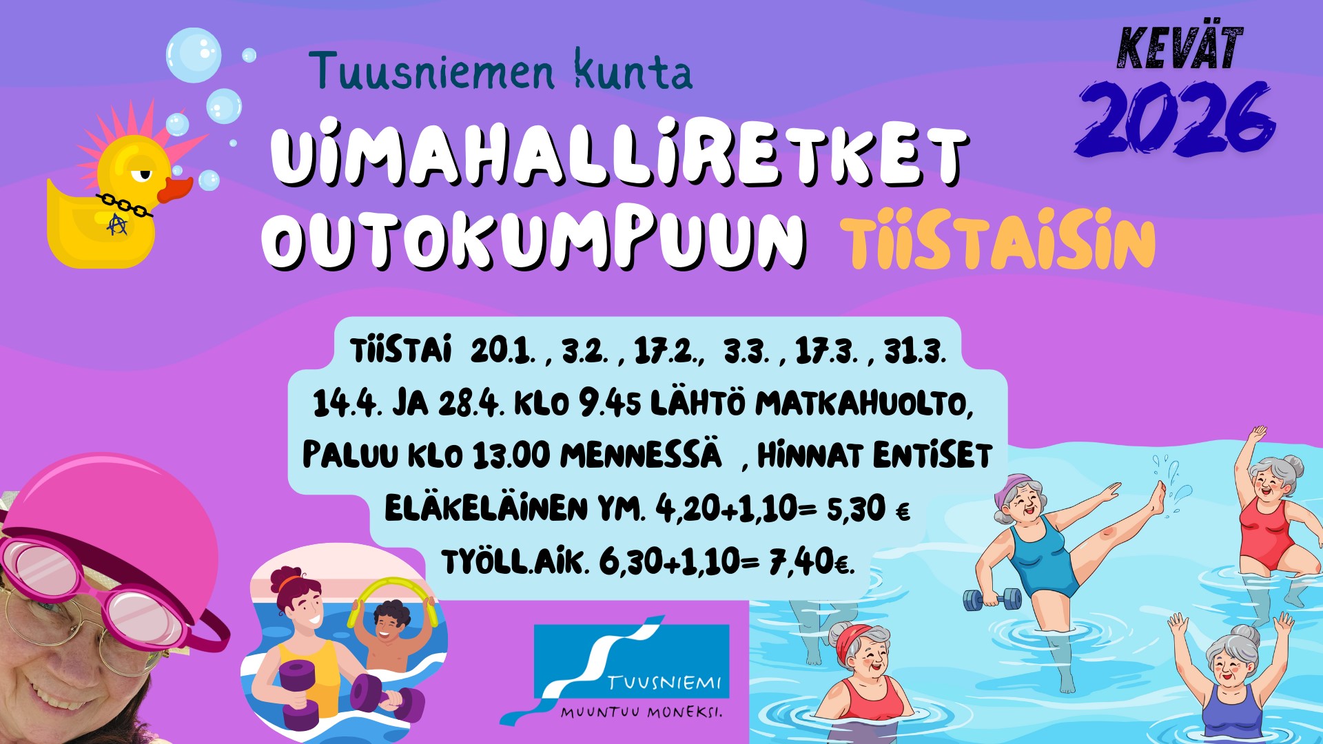 Uimahalliretket Outokumpuun 2026 tiistaisin, lähtö klo 9.45 Matkahuolto, paluu klo 13.