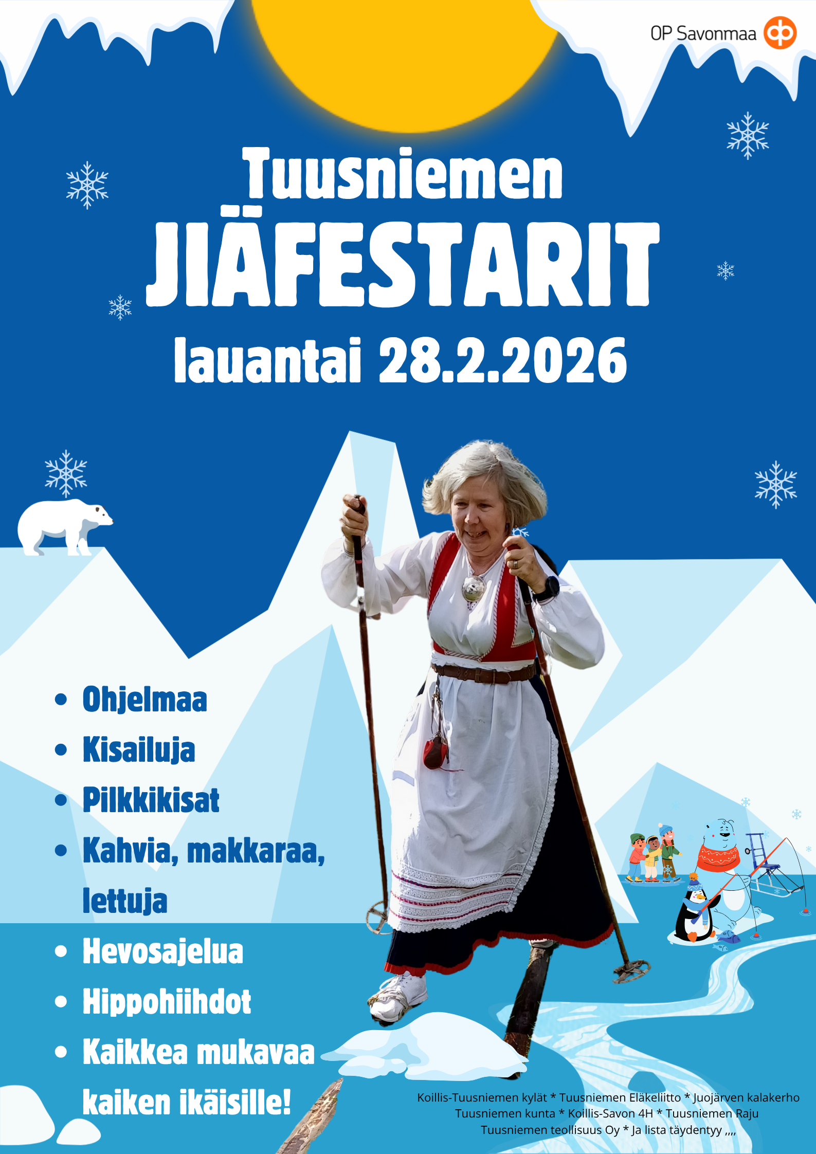14.2.2026 Ystävänpäivä hyväntekeväisyystapahtuma klo 12 Tuusniemen tori Ohjelmassa mm. soppatykki ruokailu, järjestää Soppa Äijjä yhdessä muiden yrittäjien kanssa