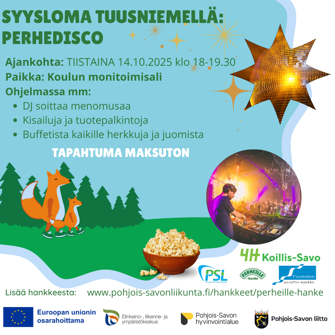 ti 14.10. klo 18-19.30 Syysloman PERHEDISKO Koululla, monitoimisali, Keskitie 34